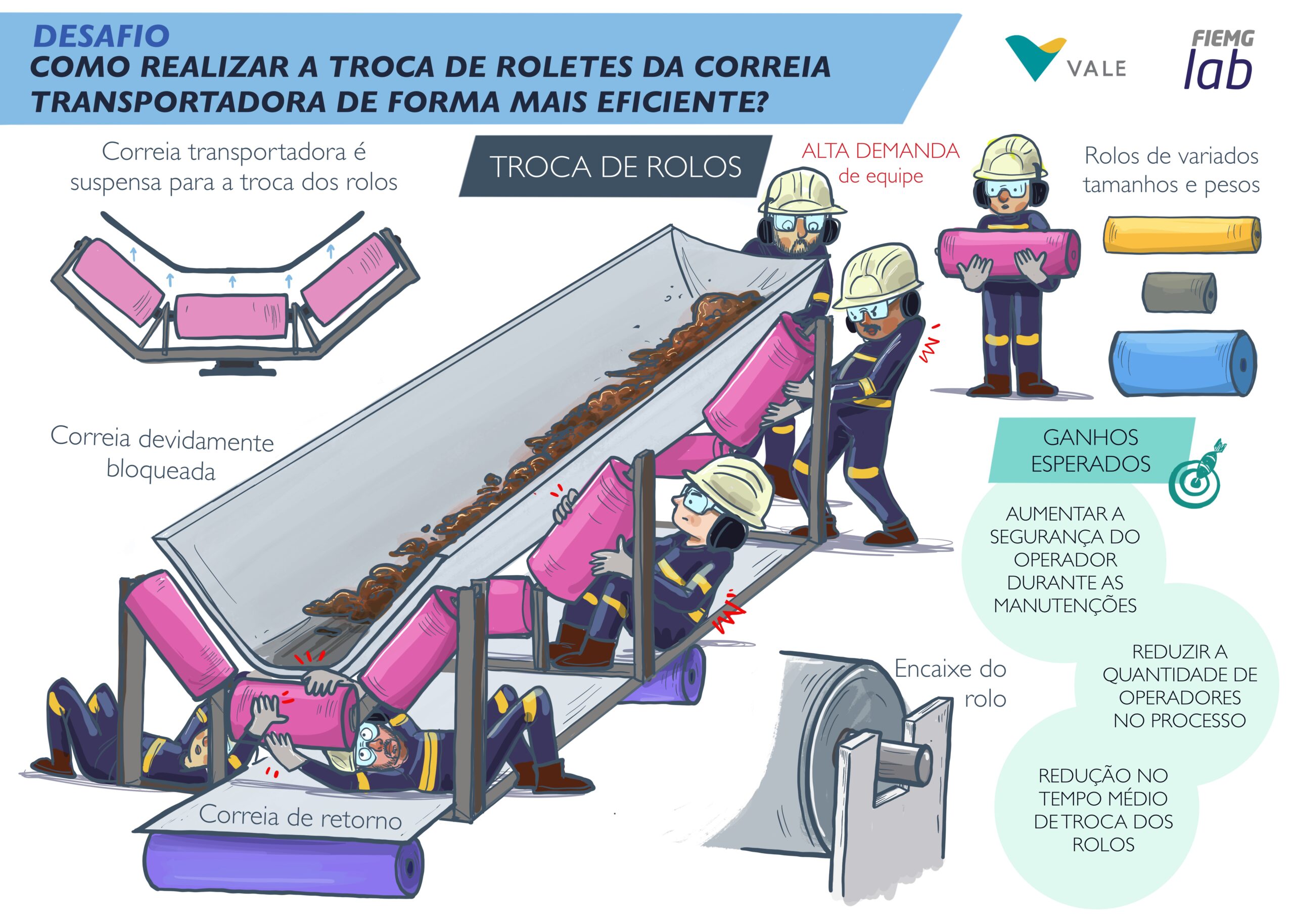 Na Vale, a substituição de componentes em correias transportadoras é uma atividade rotineira de manutenção e desempenha papel fundamental para a confiabilidade e segurança nas operações. Em alinhamento com a busca contínua pela excelência operacional e pela inovação dos processos, a atividade em questão apresenta oportunidades relevantes de aprimoramento nos aspectos de produtividade e eficiência.